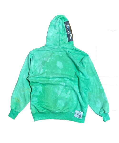 後染め加工を施した12ozコットンスエットボディーにシルクスクリーンプリントを